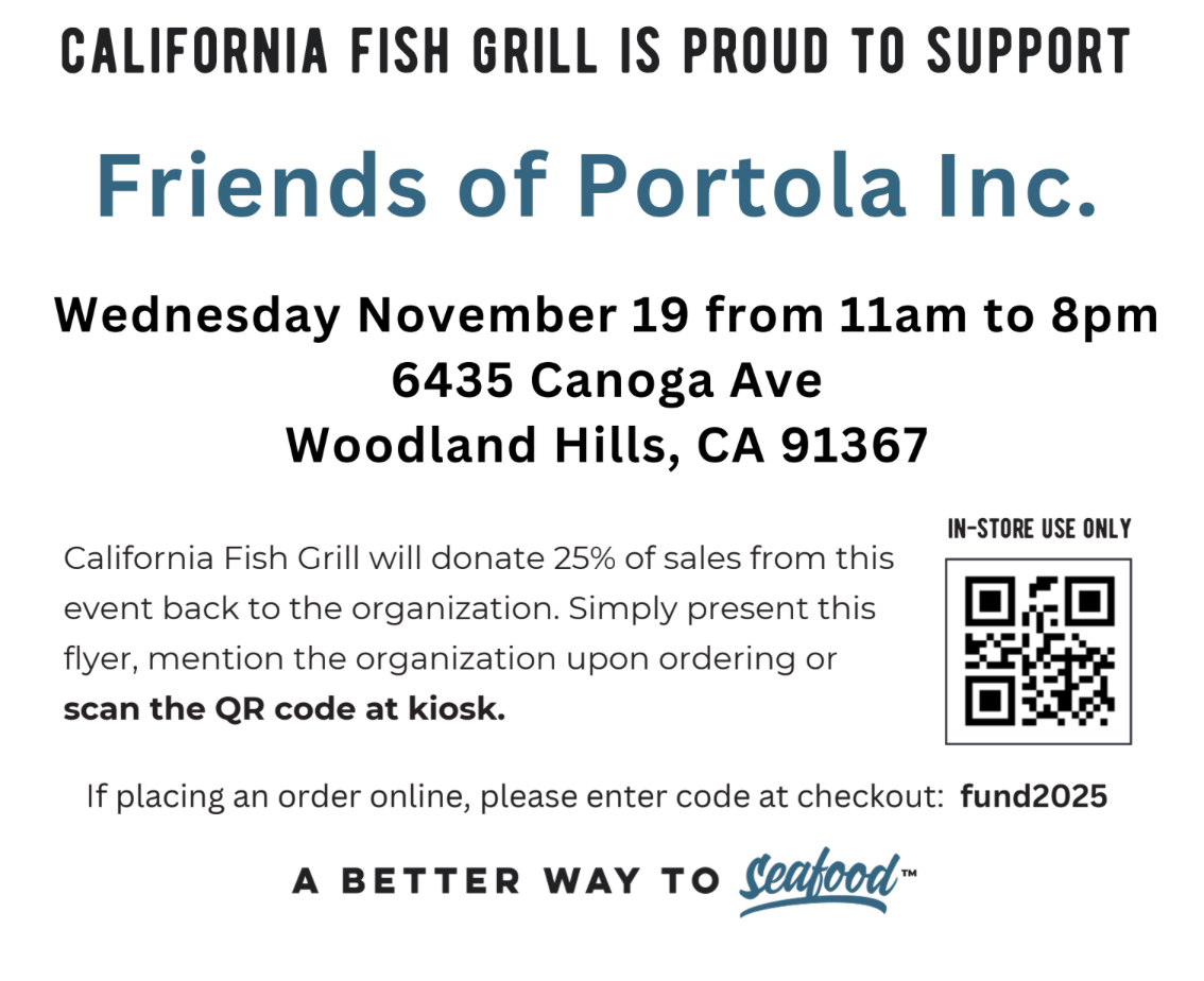 NOV 19th California Fish Grill will give back 25% Back to Our School